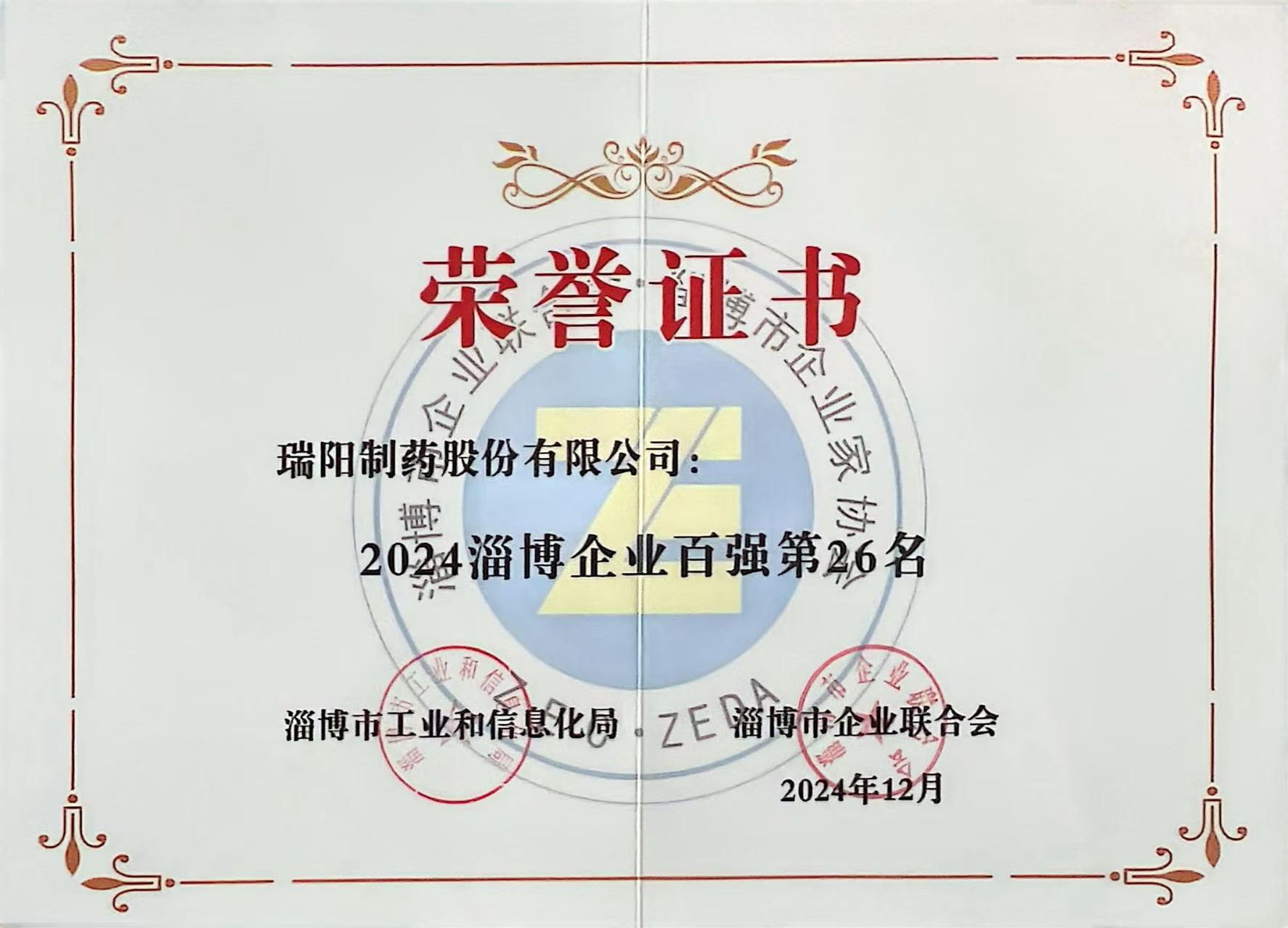 公司榮獲“淄博企業100強”和“淄博制造業企業100強”